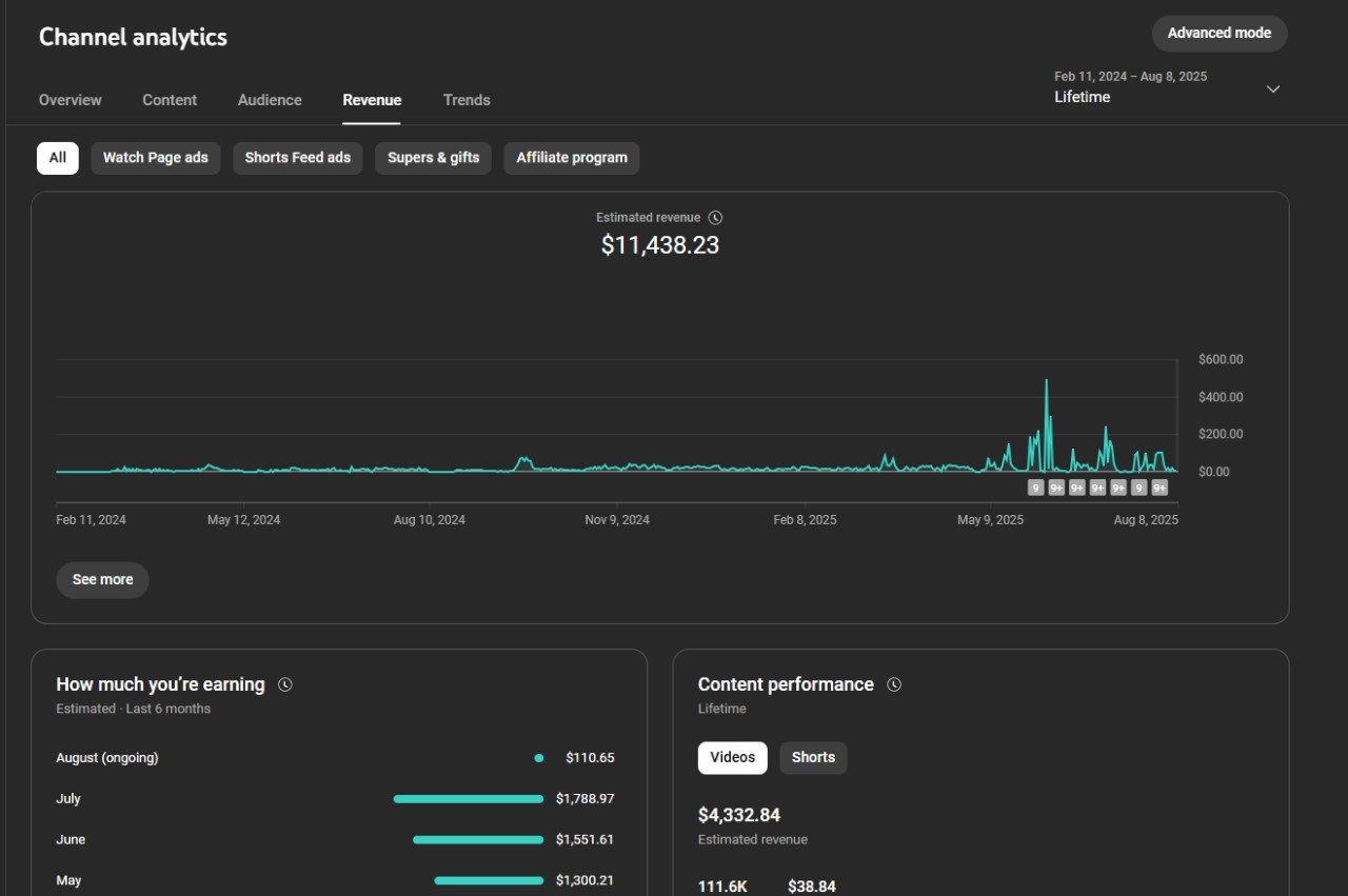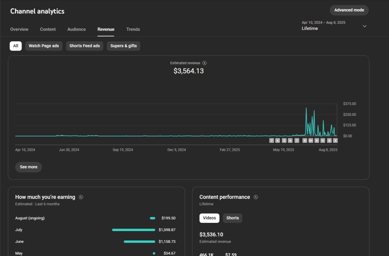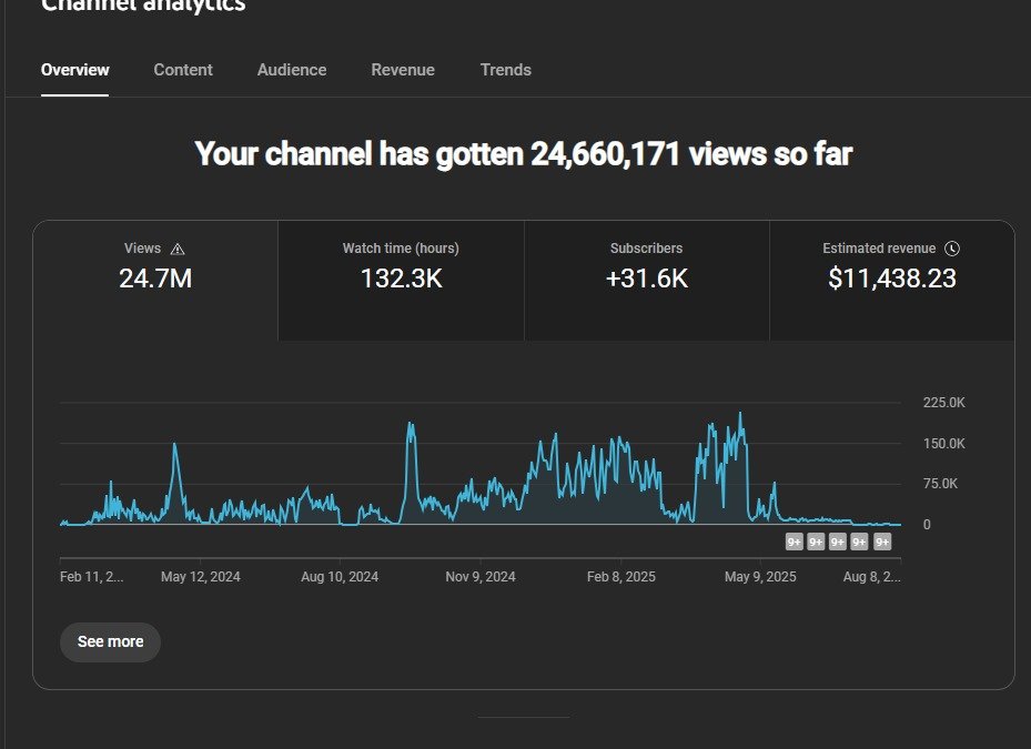 π Client YouTube channels are scaled with more content, ads, and monetization strategies.